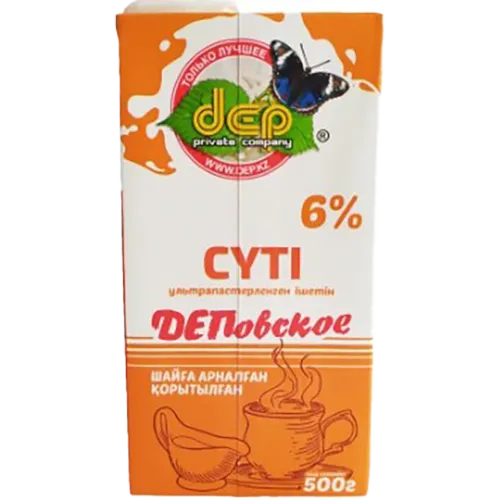 Молоко ультрапастеризованное Деповское топленое к чаю 6%, 500 мл, Казахстан